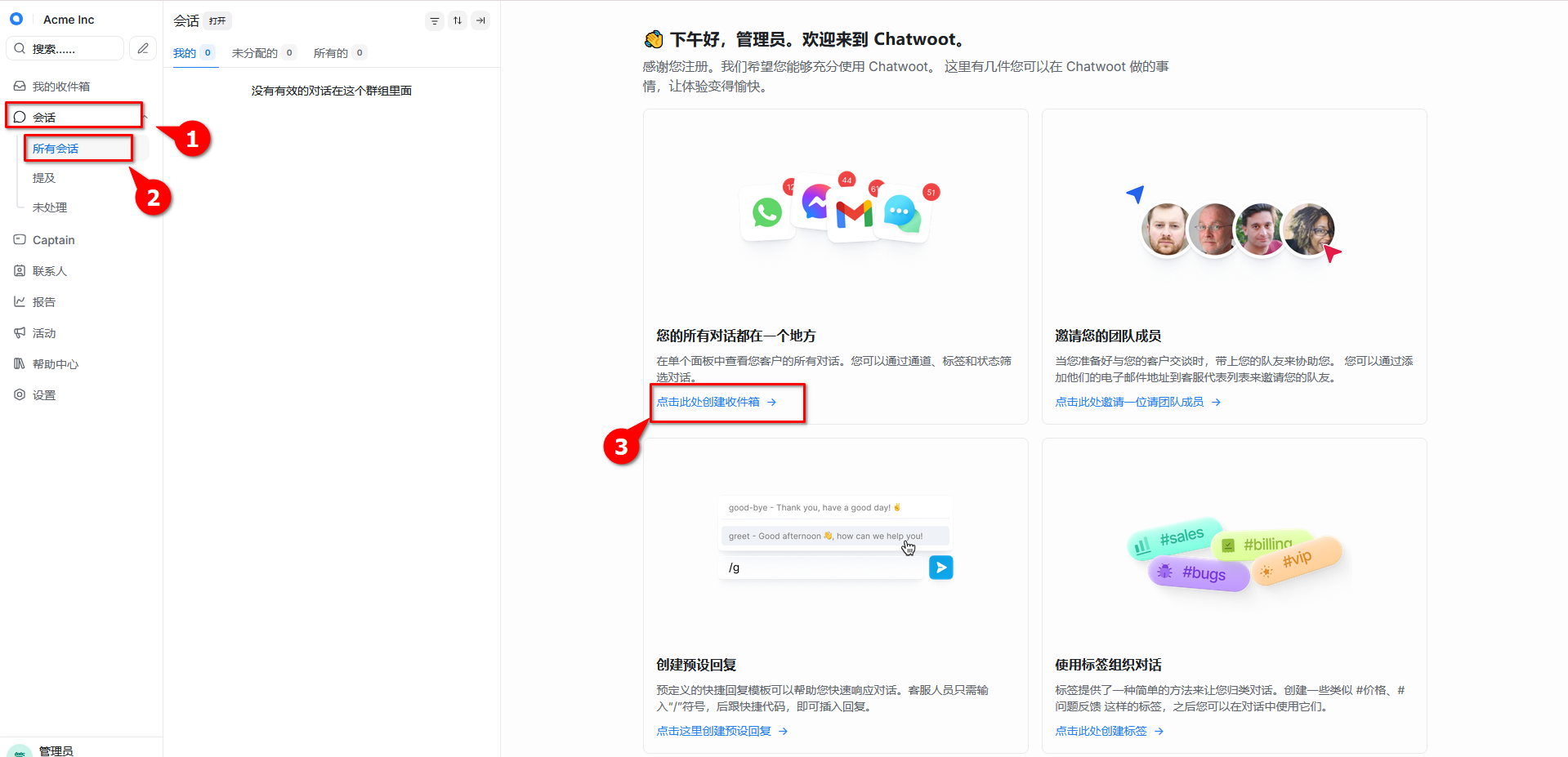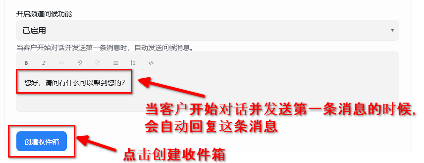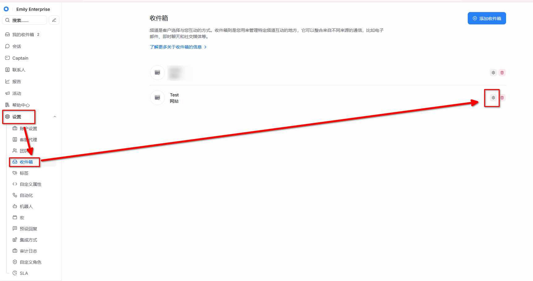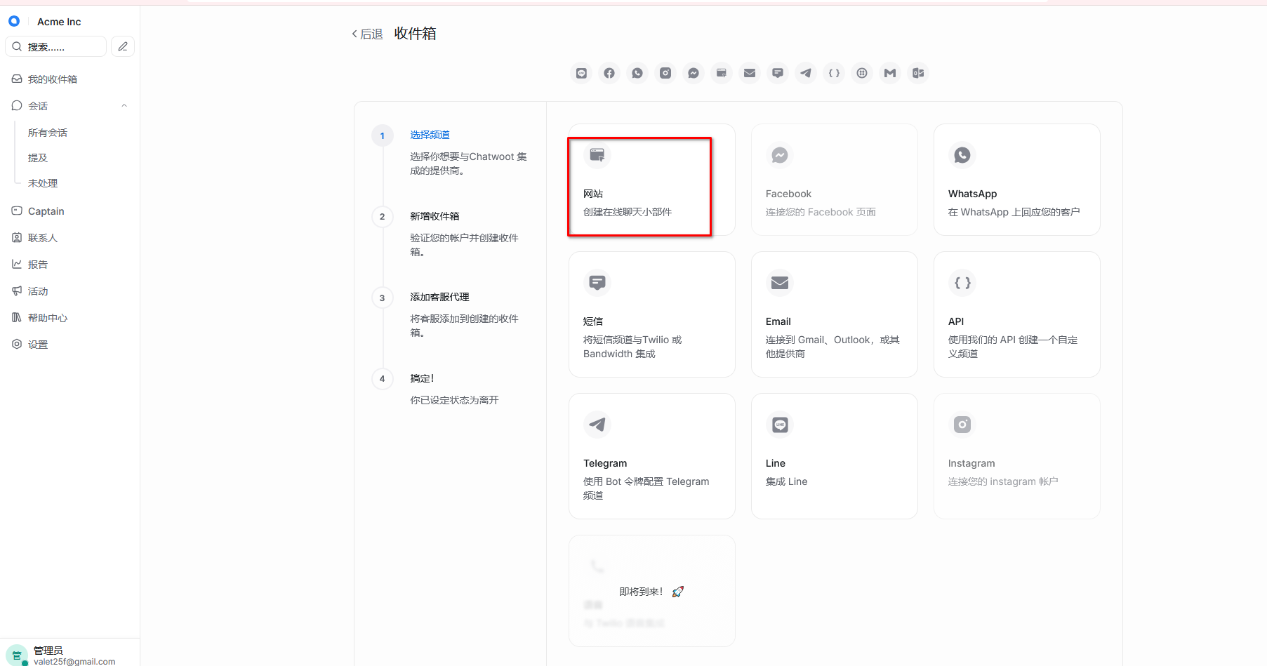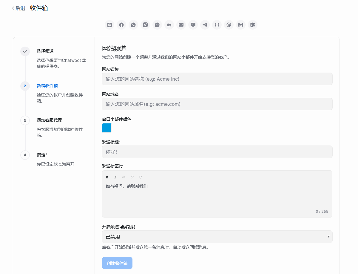 2. 点击创建收件箱,以网站为例