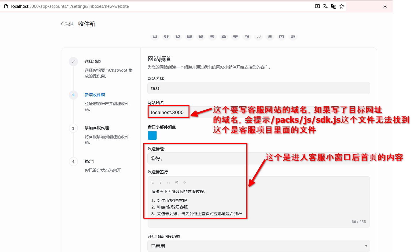 3. 输入网站的相关信息,并创建收件箱