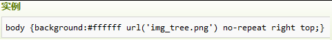 以上实例中,背景图像与文本显示在同一个位置,为了让页面排版更加合理,不影响文本的阅读,我们可以改变图像的位置。